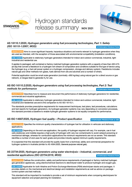 Hydrogen Standards Information Sheets